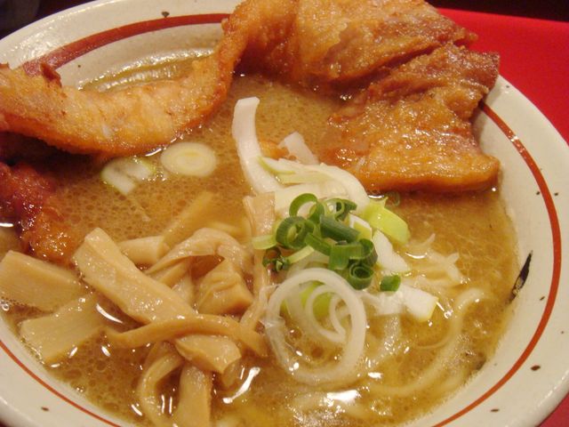 最讓人驚艷的莫過於蛋頭點的拉麵裡頭的炸豬肉片